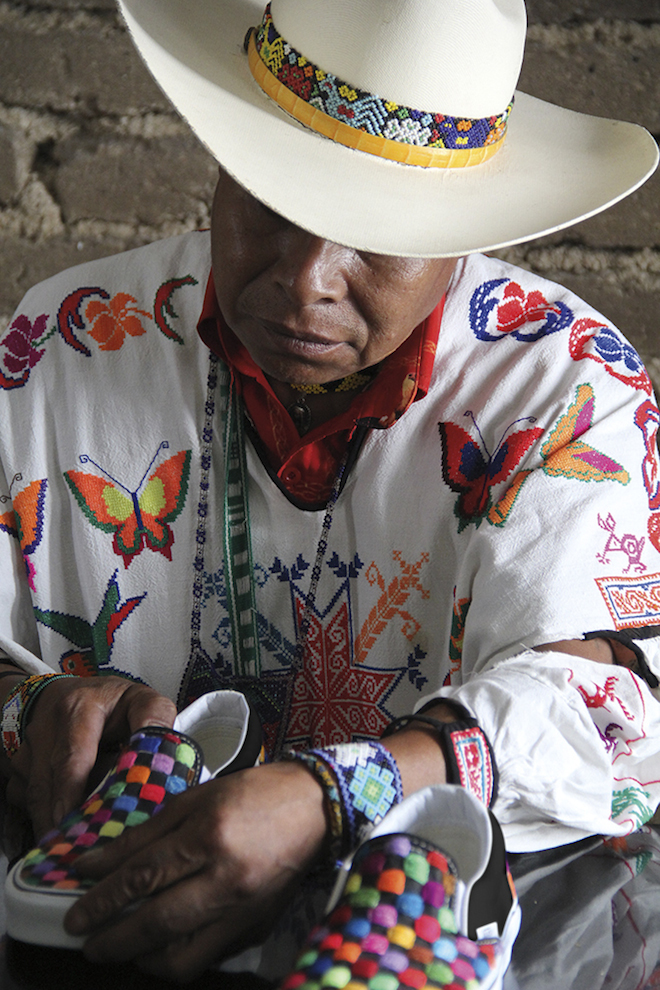 La empresa internacional Vans junto con la colaboración de un grupo de huicholes mexicanos, reinventaron los modelos Slip-On LX y Sk8-Hi LX con cuentas y bordados, en un proceso que tomó más de 10 meses al haberlos hecho a mano.
