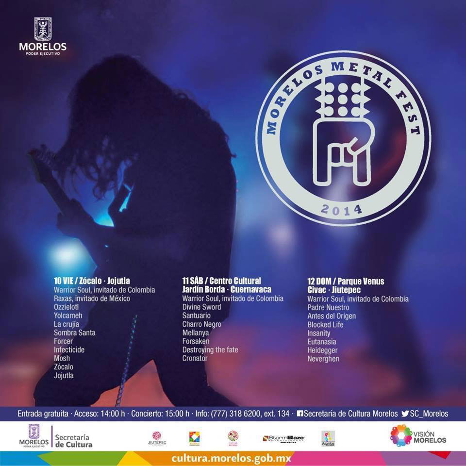 Por primera vez en el estado de Morelos se decide hacer un festival con únicamente música metalera y sus sub géneros. Dando a conocer 21 bandas de los alrededores. Se contará con la participación especial de la banda “Raxas” y desde Colombia “Warrior Soul”.