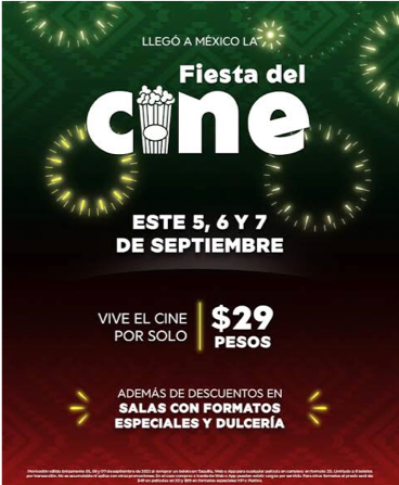 Empresarios de principales cadenas de cine, anunciaron “La Fiesta del Cine”, que se llevará a cabo los días 5, 6 y 7 de septiembre, donde podrán ver las películas de cartelera y algunas otras que ya habían sido exhibidas.