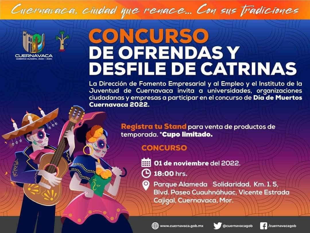 La Secretaría de Desarrollo Económico y Turismo de Cuernavaca y el Instituto de la Juventud, invitan a todos los ciudadanos a ser participes de uno de los eventos culturales que se estarán llevando a cabo con motivo de la celebración del Día de Muertos, que año con año se celebra en nuestro país.