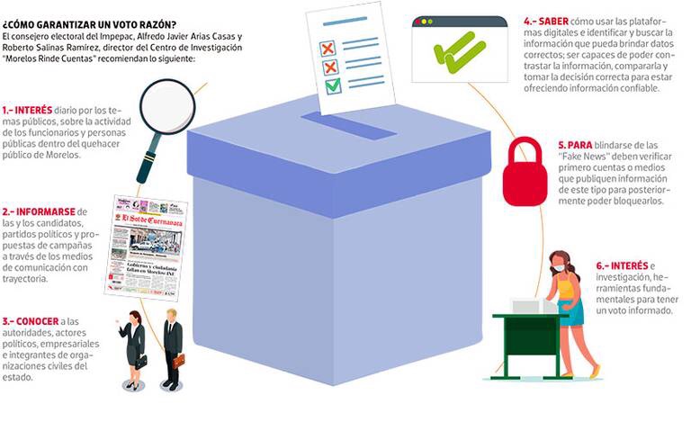 Por su parte el consejero electoral del Instituto Morelense de Procesos Electorales y Participación Ciudadana (Impepac), Alfredo Javier Arias Casas, subrayó que es fundamental que el electorado esté informado, primero porque el tema de la información es un derecho, y, segundo, es una obligación de los ciudadanos estar informados, debido a que se trata de tomar una información que va a beneficiar o perjudicar en lo individual y en lo colectivo.