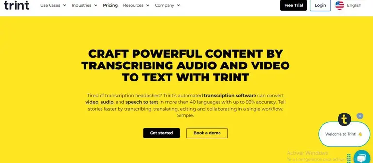 El software de Trint genera transcripciones automáticas de video, audio y voz a texto en más de 40 idiomas, con una precisión del 99%.