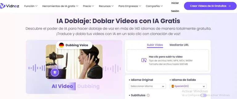 Vidnoz cuenta con la función “Vidnoz IA Doblaje”, que utiliza tecnología de inteligencia artificial avanzada para convertir cualquier video a texto. Ofrece soporte en más de 140 idiomas y tiene una precisión del 98,3 %.