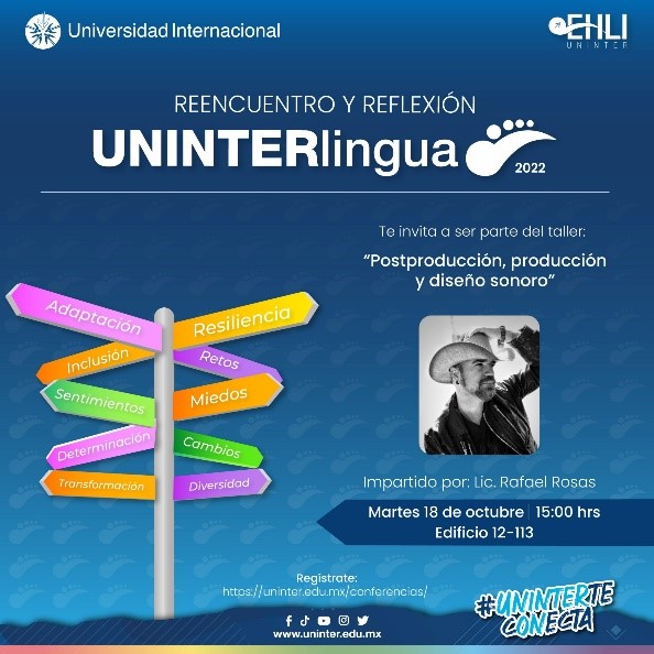 En el segundo día del evento UNINTERlingua, de la Universidad Internacional, tuve la oportunidad de entrevistar a Rafael Rosas Jiménez, un grandioso productor cuyo taller titulado “Producción, postproducción y diseño sonoro” pudimos apreciar. A lo largo de la charla, él nos habló sobre la industria cinematográfica y musical, sobre la importancia de los efectos de sonido, los derechos de autor y cómo podemos generar contenido auditivo que acompañe a la imagen; en sus palabras, el diseño sonoro nos ayuda a crear una reflexión de imagen, y el cómo lo componemos es un proceso creativo absoluto.